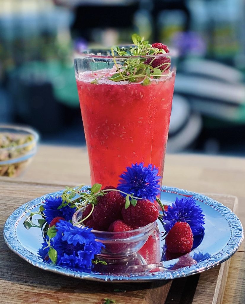 Föreslår en härligt röd hallon- & timjanlemonad till detta.